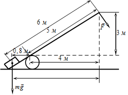 Вектор силы F перпендикулярен рычагу. Расстояния между точками приложения сил и точкой опоры, а также проекции этих расстояний на вертикальную и горизонтальную оси указаны на рисунке. Если модуль силы F равен 120 Н, то модуль силы тяжести, действующей на груз, равен